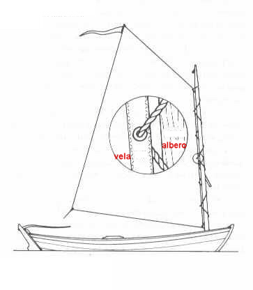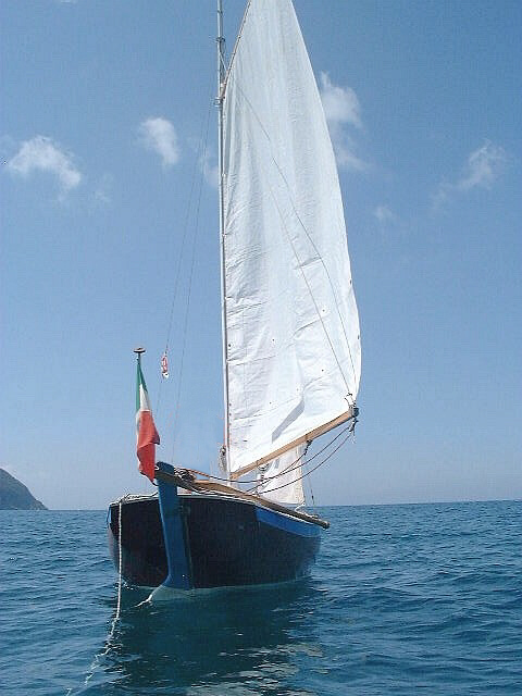 E’ vero. Occorre tuttavia osservare che, a parità di superficie velica, la bermudiana necessita di un albero più alto. Ciò da un lato rende necessario alleggerire l’albero con l’impiego di materiali dotati di basso peso specifico, dall’altro, conseguentemente, impone l’irrobustimento della struttura, mediante l’impiego di un complesso sistema di sartie e crocette, anche in barche di modeste dimensioni. L’albero che regge una vela aurica, essendo più basso, può invece essere realizzato con un semplice fusto di buon legno stagionato, o con tavole di legno incollate con epidossica e opportunamente sagomate. Sulle piccole barche questo albero non necessita di crocette, può essere retto da sole quattro sartie e (se ben costruito) è praticamente eterno. Inoltre la ridotta lunghezza dell’albero e l’assenza di un complesso sartiame, rende agevole la realizzazione di alberi abbattibili e pone meno problemi di lunghezza e ingombro nel caso di traino della barca su strada.