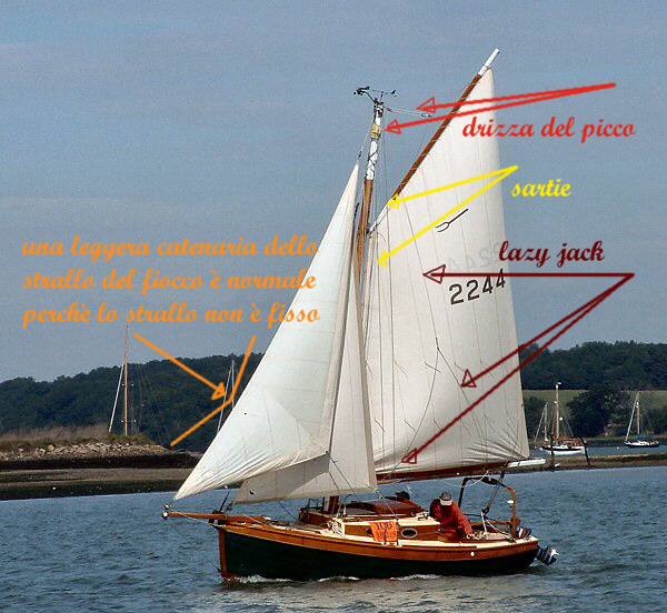 E’ vero che la randa aurica è particolarmente scomoda perché necessita di una doppia drizza per issarla e ammainarla?
