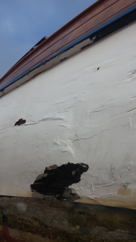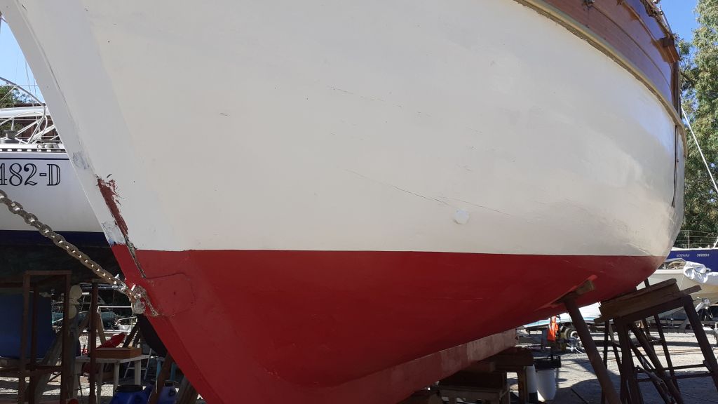Le murate erano state stuccate a gesso e riverniciate da bordo, si vedono bene i segni del rullino sul bottaccio e sulla linea di galleggiamento….