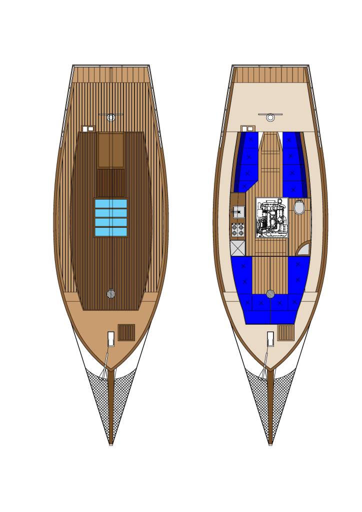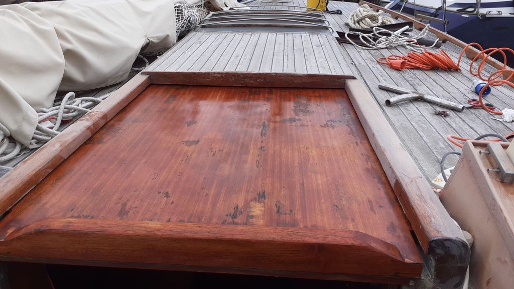 Anche la coperta, in origine, era di larice, poi è stata modificata, ed attualmente sia la coperta che la tuga sono in Iroko.