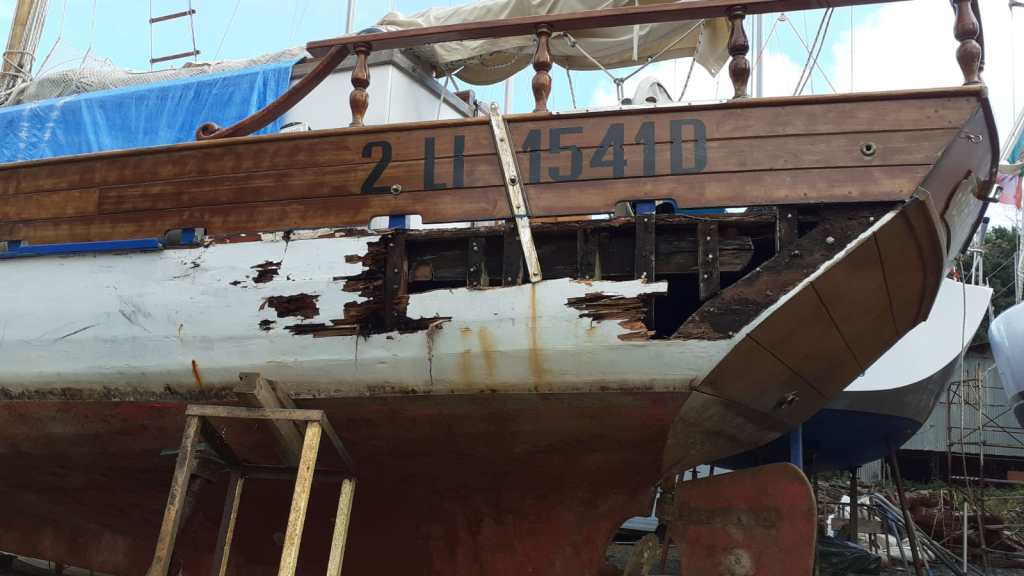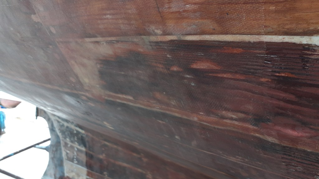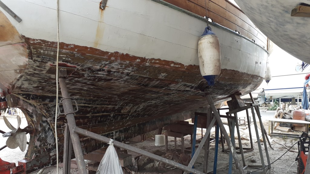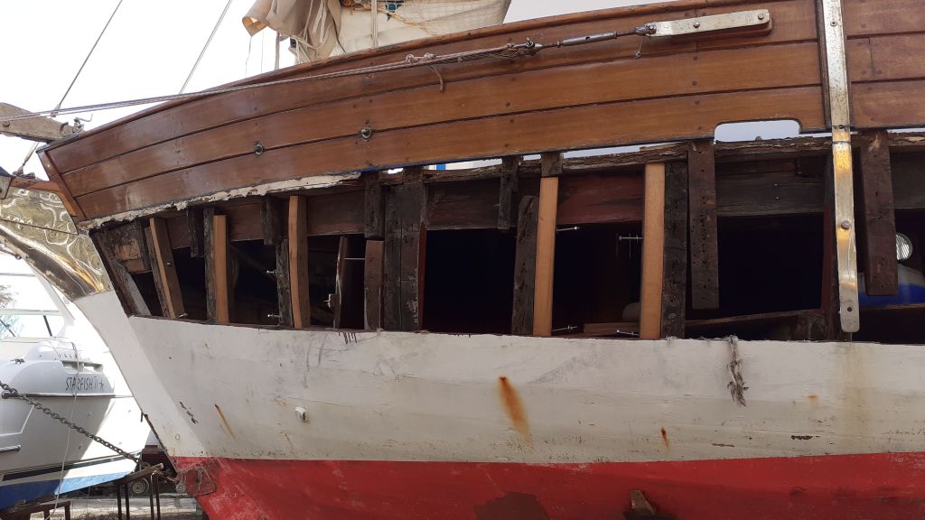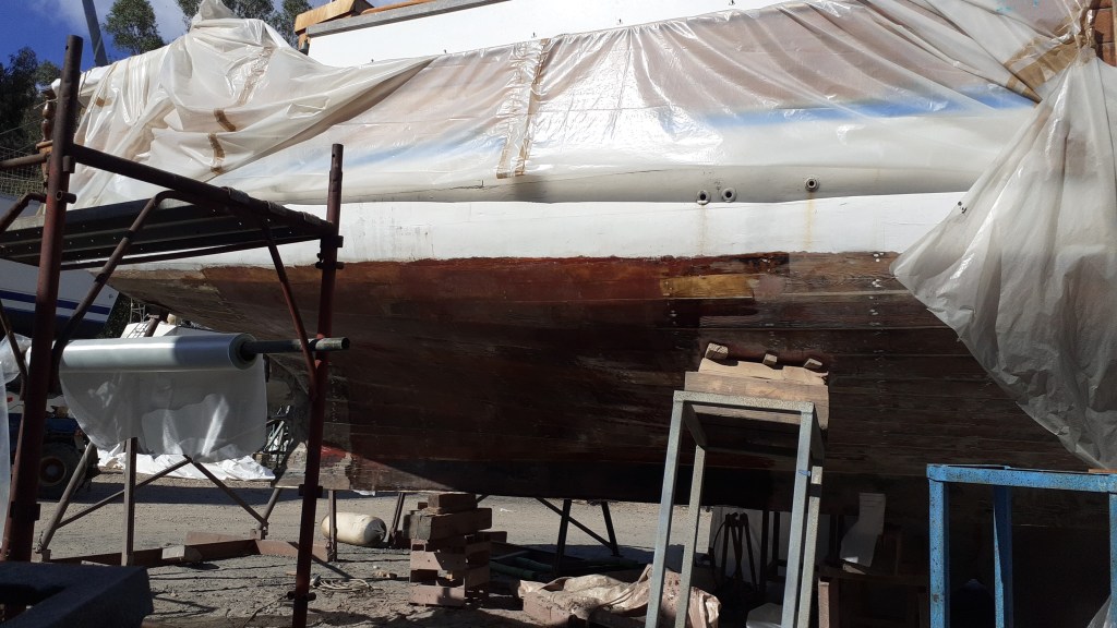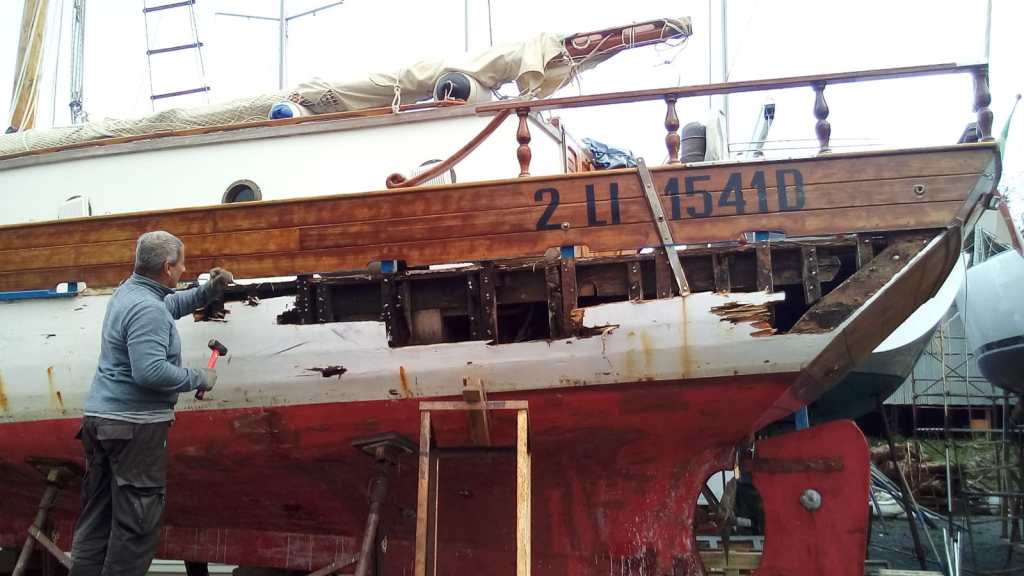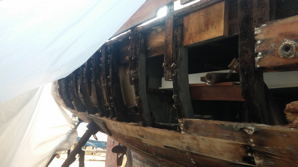 Dopo lo sgomento iniziale, (avevamo deciso di anticipare la sosta in cantiere per fare carena in un paio di settimane e navigare tutto l’inverno), ed esserci consultati con alcuni professionisti e maestri d’ascia, decidiamo di portare tutto a legno.