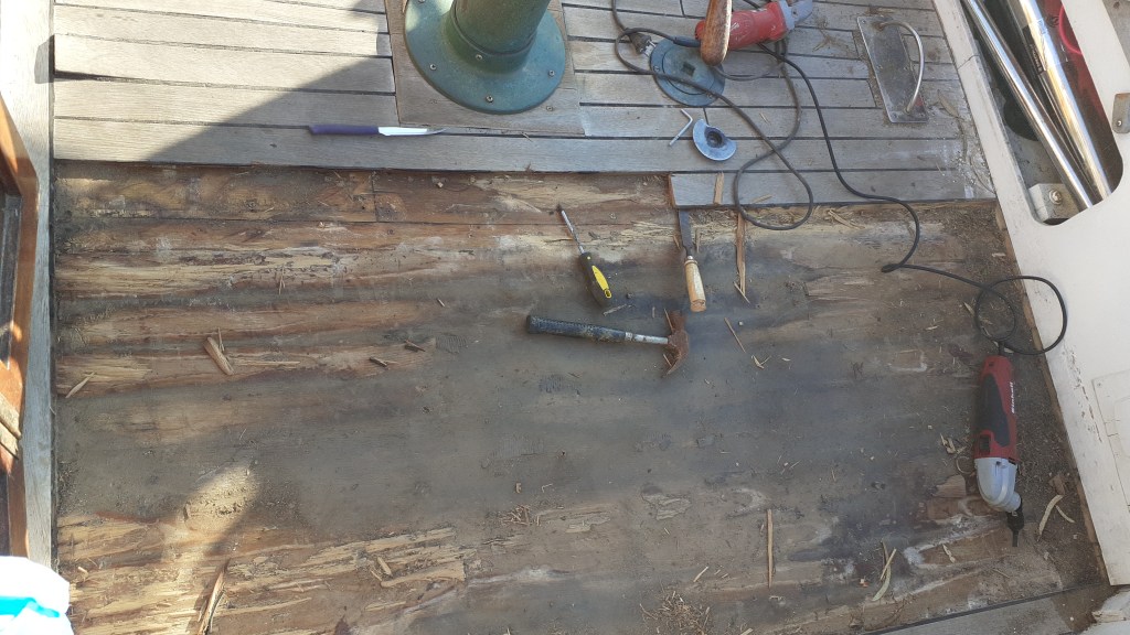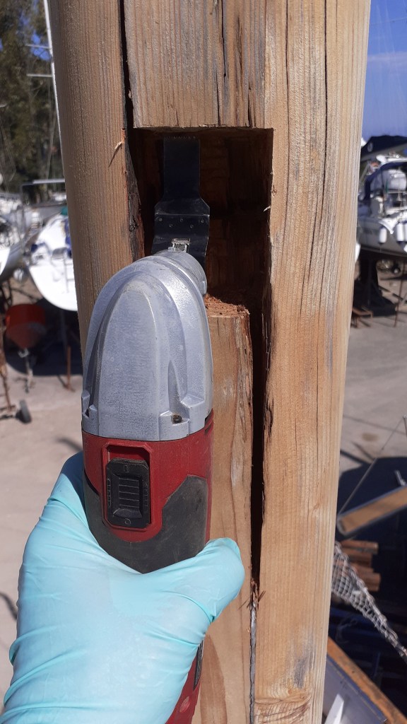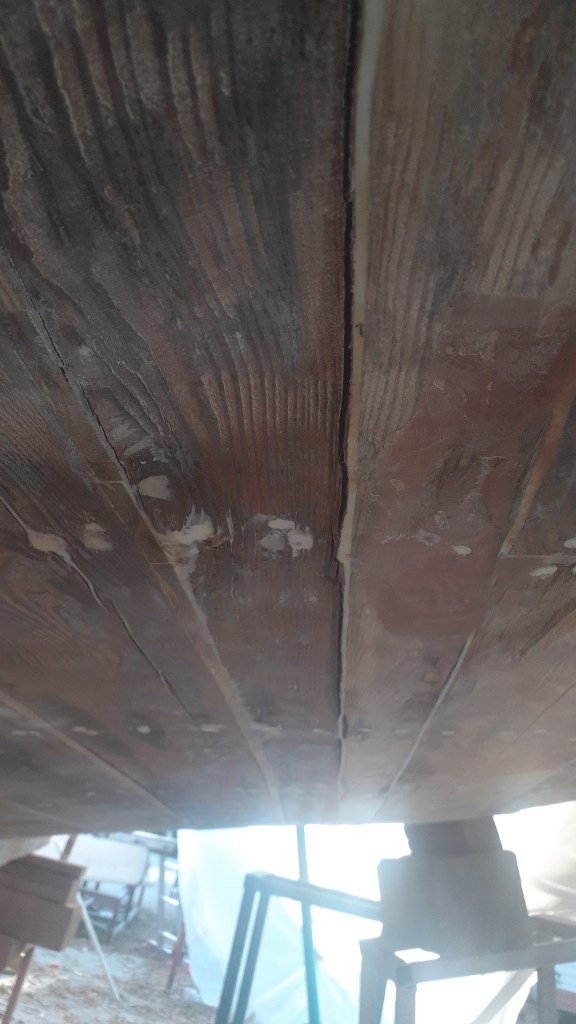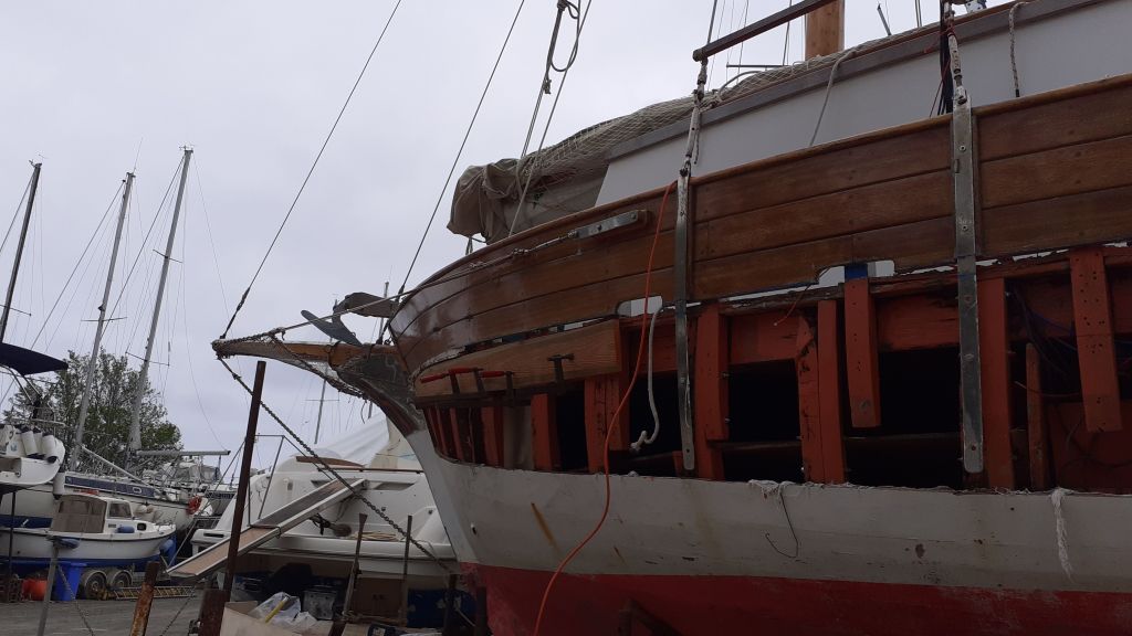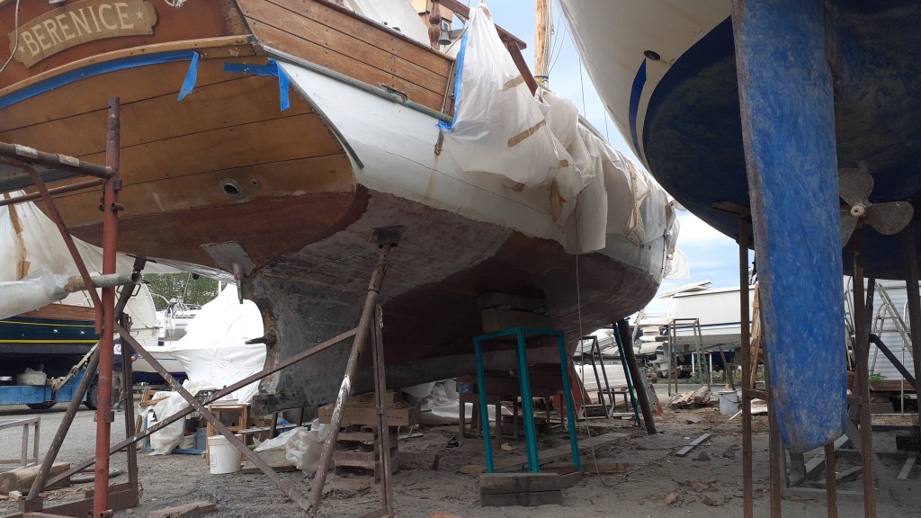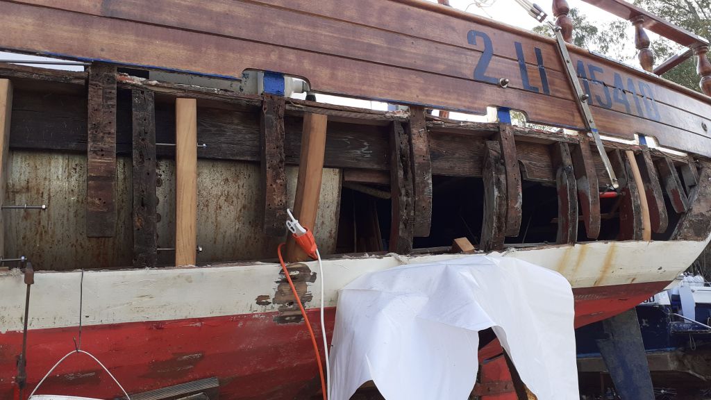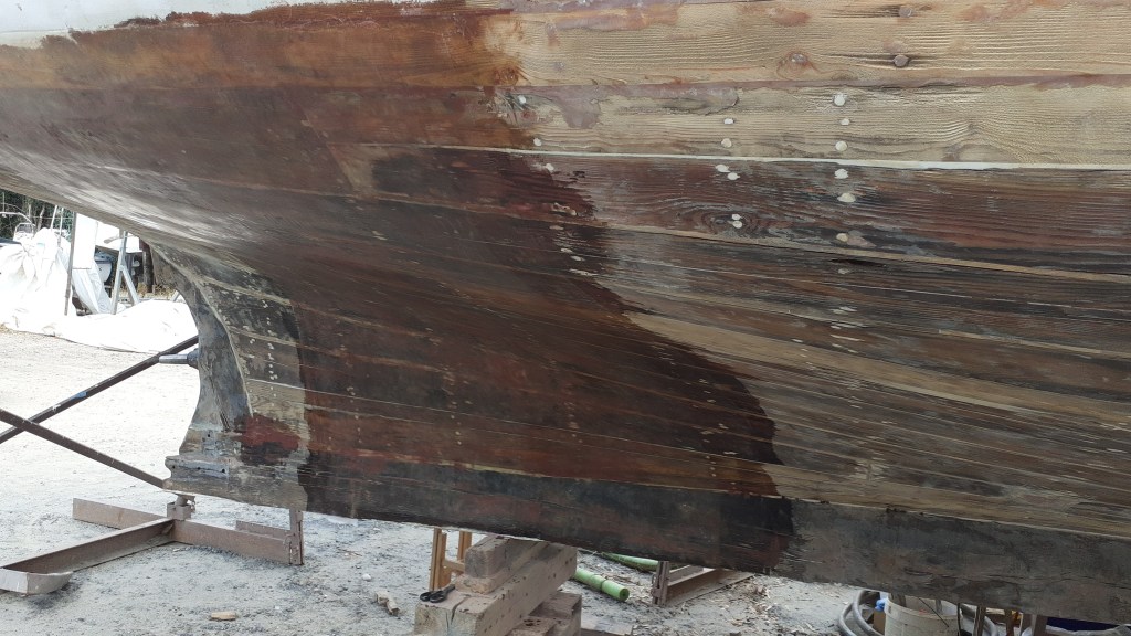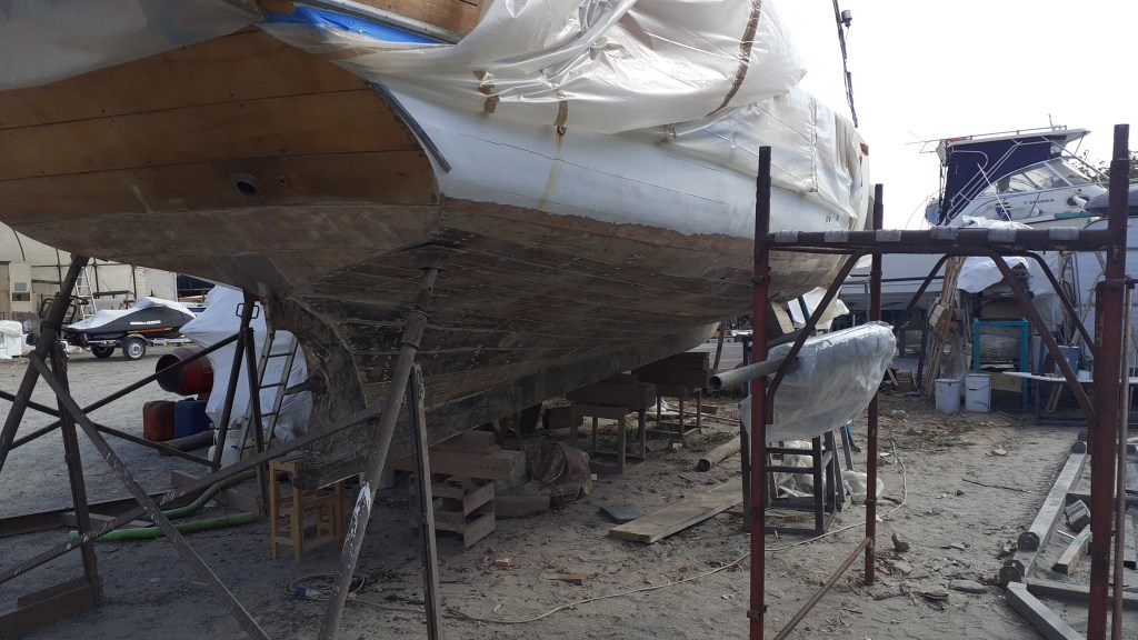 Dopo lo sgomento iniziale, (avevamo deciso di anticipare la sosta in cantiere per fare carena in un paio di settimane e navigare tutto l’inverno), ed esserci consultati con alcuni professionisti e maestri d’ascia, decidiamo di portare tutto a legno.