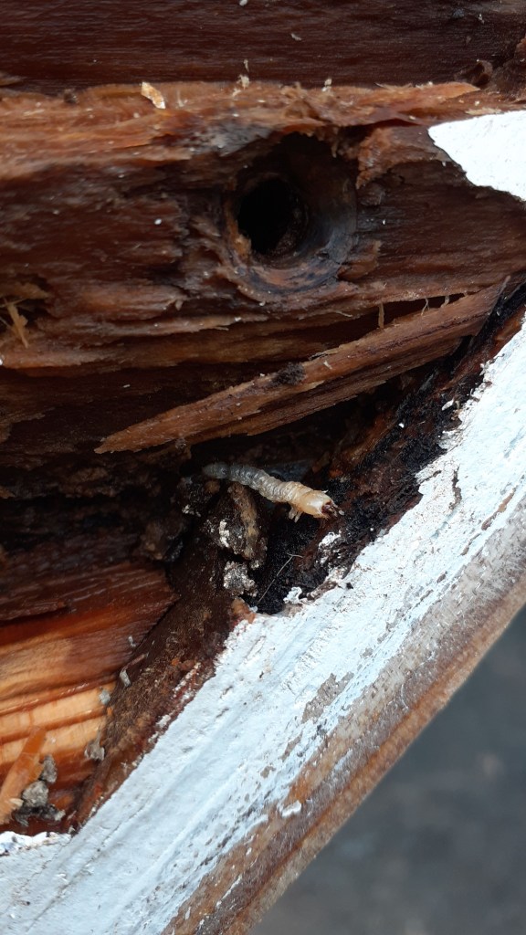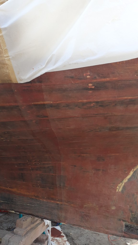 A distanza di un anno i sali di boro ricoprono ancora parte dei legni, ma procederemo ad un’altra disinfestazione appena in cantiere.