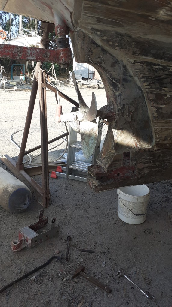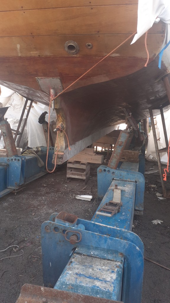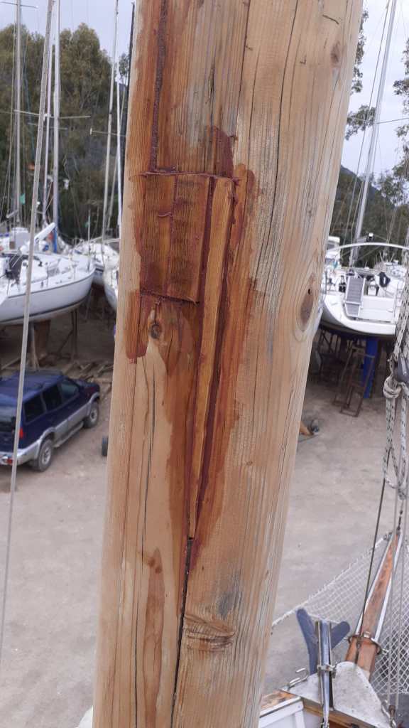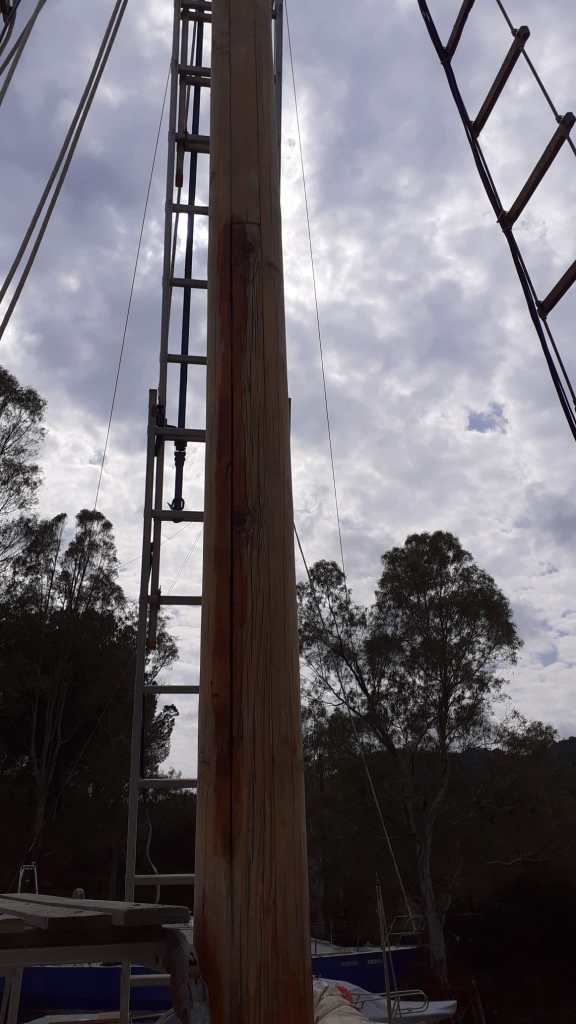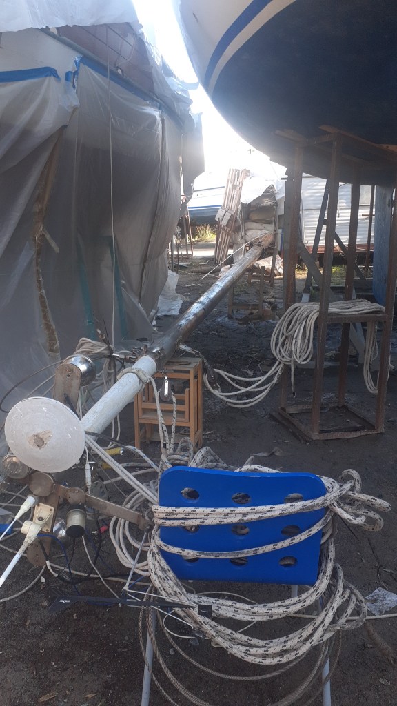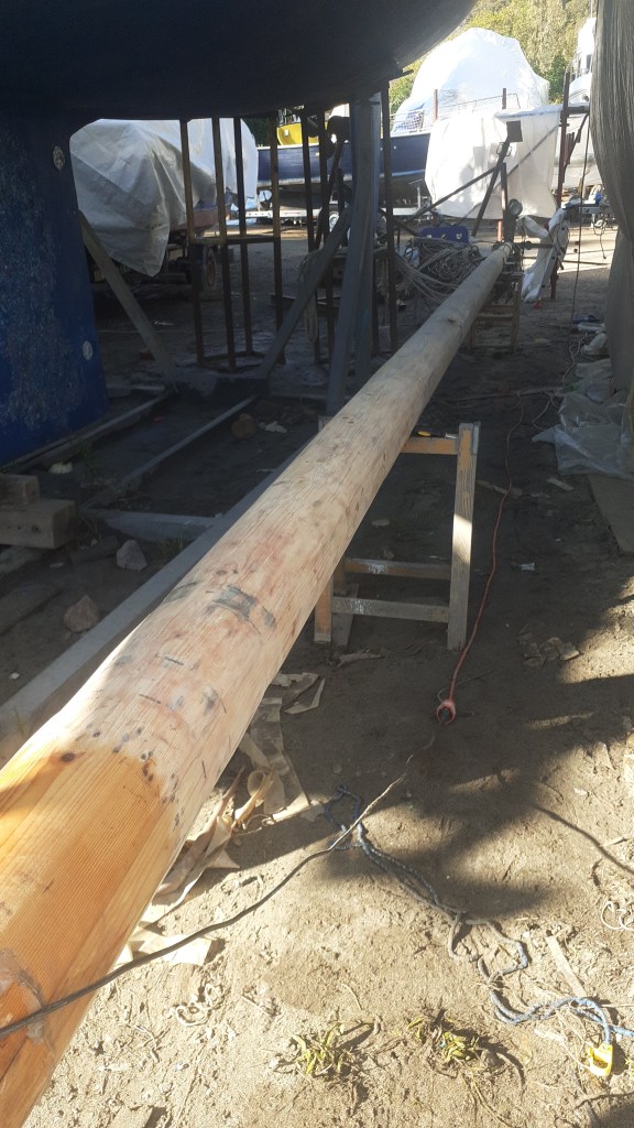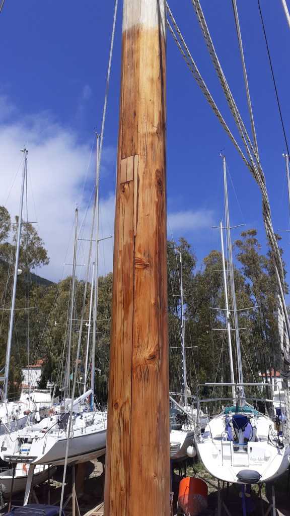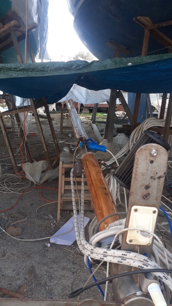 Nel frattempo, mentre lo scafo asciuga, abbiamo disalberato per poter fare manutenzione , oltre che all’albero, anche i tarozzi