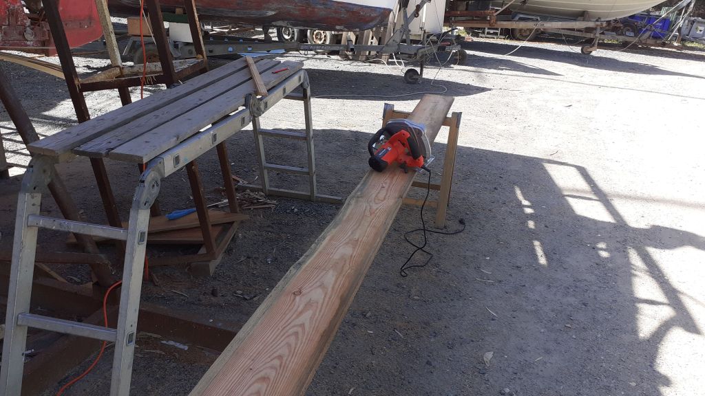 Da poppa a prua, i primi 6 metri riusciamo con 2 listelli da 4 e 2 m , 5cm di altezza per 11 di spessore , poi al mascone la curvatura diventa eccessiva, e dividiamo il listello in 2 pezzi da 5,5 cm, incolliamo tutto e mettiamo in opera con i morsetti in attesa che asciughi.