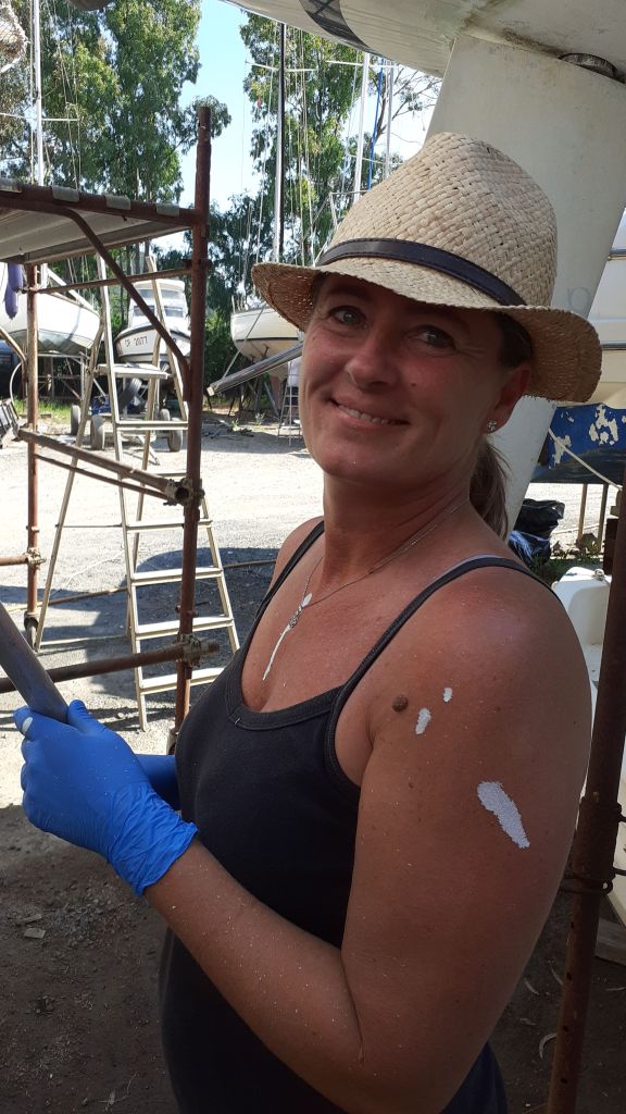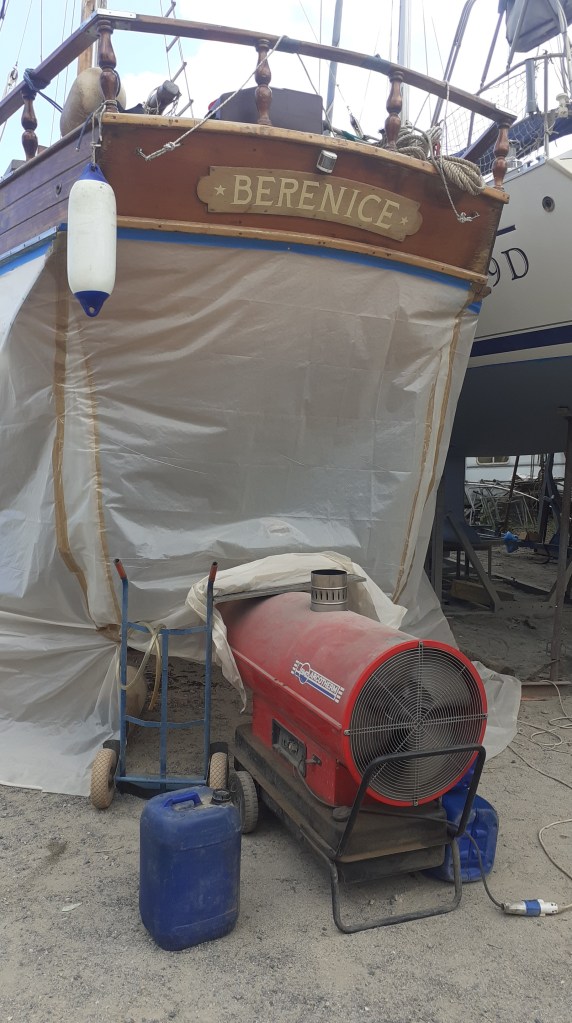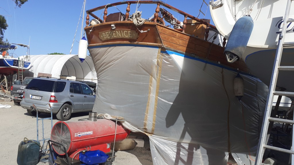 Quest’anno abbiamo deciso di resinare l’opera viva, per irrobustire Berenice, e per risolvere definitivamente le infiltrazioni d’acqua.